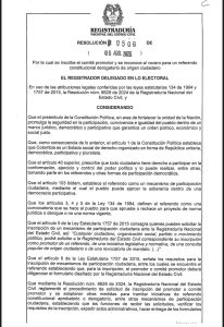La Registraduría Nacional del Estado Civil aprobó la inscripción de un comité ciudadano que pretende convocar a un referendo con el objetivo de derogar el Acuerdo de Paz firmado en 2016 entre el Gobierno y las extintas Farc.