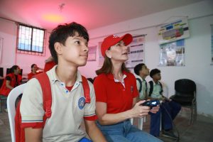 “Esta actividad nos acercó más al mundo digital y nos motiva a explorar los campos tecnológicos, lo que también nos ayuda a reforzar los tres énfasis que actualmente tiene el colegio, que son tecnología, robótica y programación. Lo que más me gustó fueron las gafas de realidad virtual, fue una experiencia que disfrutamos mucho tanto los niños como los chicos más grandes”, expresó la joven, de 11 grado.