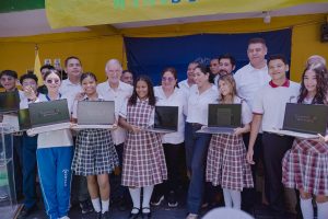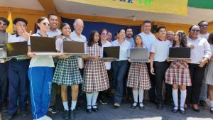 “También vinimos a Soledad a entregarles herramientas tecnológicas a jóvenes de noveno grado, para que fortalezcan su educación en casa y amplíen sus oportunidades de futuro. Un computador no solamente es para el estudiante, sino para que toda la familia pueda abrir una ventana al conocimiento a través de la tecnología”, señaló Murcia.