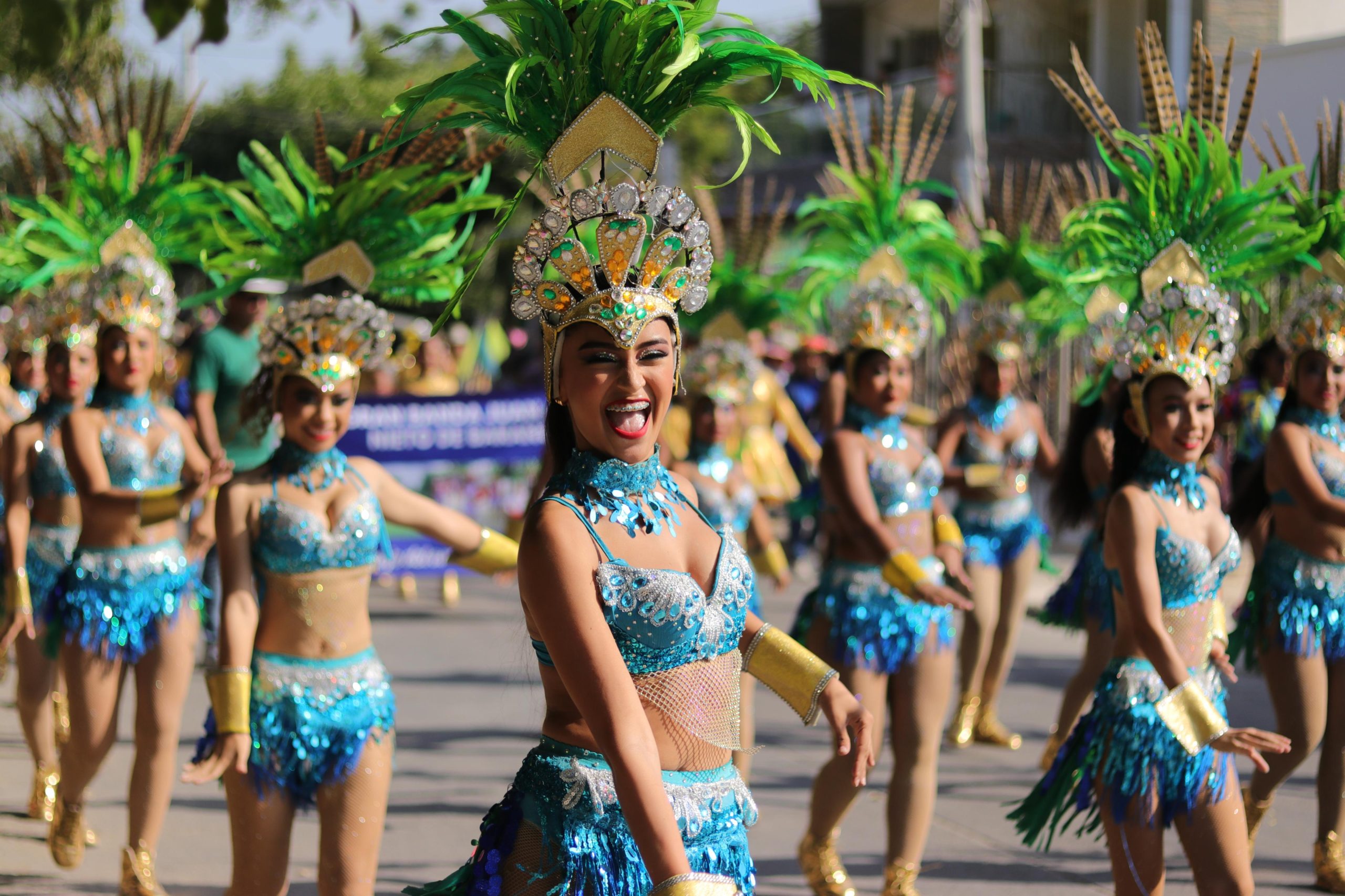 En medio de la colorida algarabía del desfile, Stephany Venegas, la Reina del Carnaval 2025, se erguía majestuosamente, ataviada con un hermoso disfraz de dos piezas color azul y un tocado de plumas.