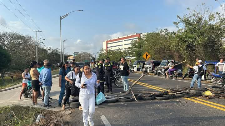 Desde las 7:00 a.m., el comité “No Más Peaje” de Baranoa inició un bloqueo en la Vía La Cordialidad, a la altura de la Clínica Reina Catalina, en la entrada al municipio.