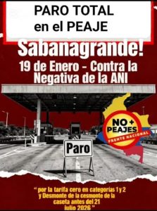 Es así como el movimiento “No + Peajes Frente Nacional” inició un paro total en el peaje de Sabanagrande, en protesta por la negativa de la Agencia Nacional de Infraestructura (ANI) a retirar la caseta.