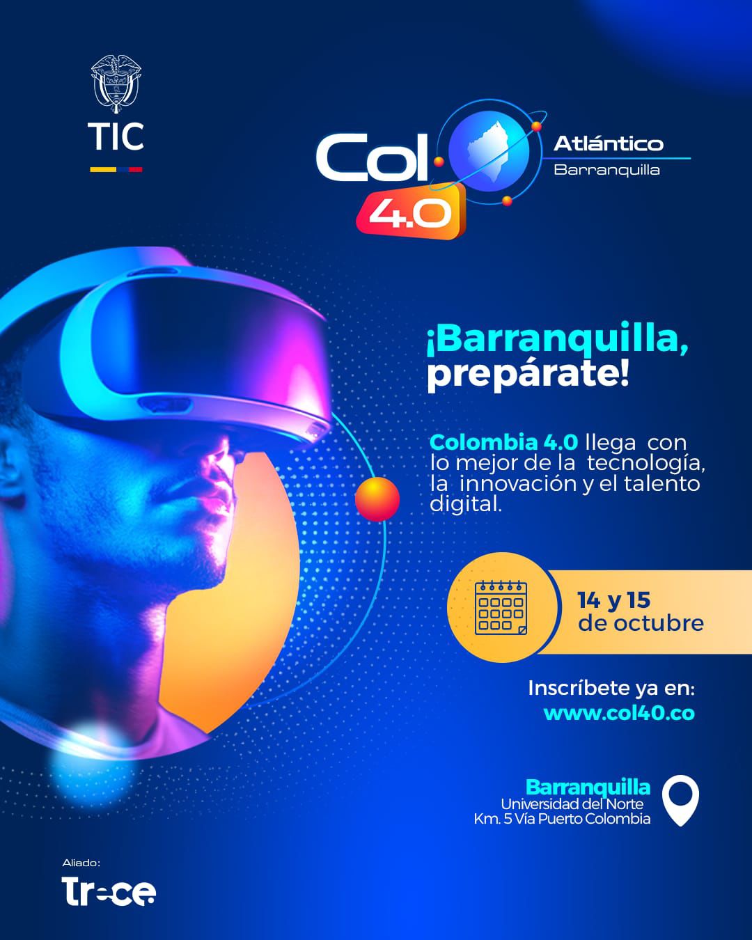 Al departamento del Atlántico llega Colombia 4.0, el evento liderado por el Ministerio de Tecnologías de la Información y las Comunicaciones (MinTIC) y apoyado por la administración departamental, que lleva lo mejor de los ecosistemas digitales a los territorios del país. En su versión número 15, este recorrido nacional visitará 11 departamentos y el Atlántico será la octava parada, consolidándose como uno de los eventos de tecnología más importantes del Caribe colombiano en 2025.