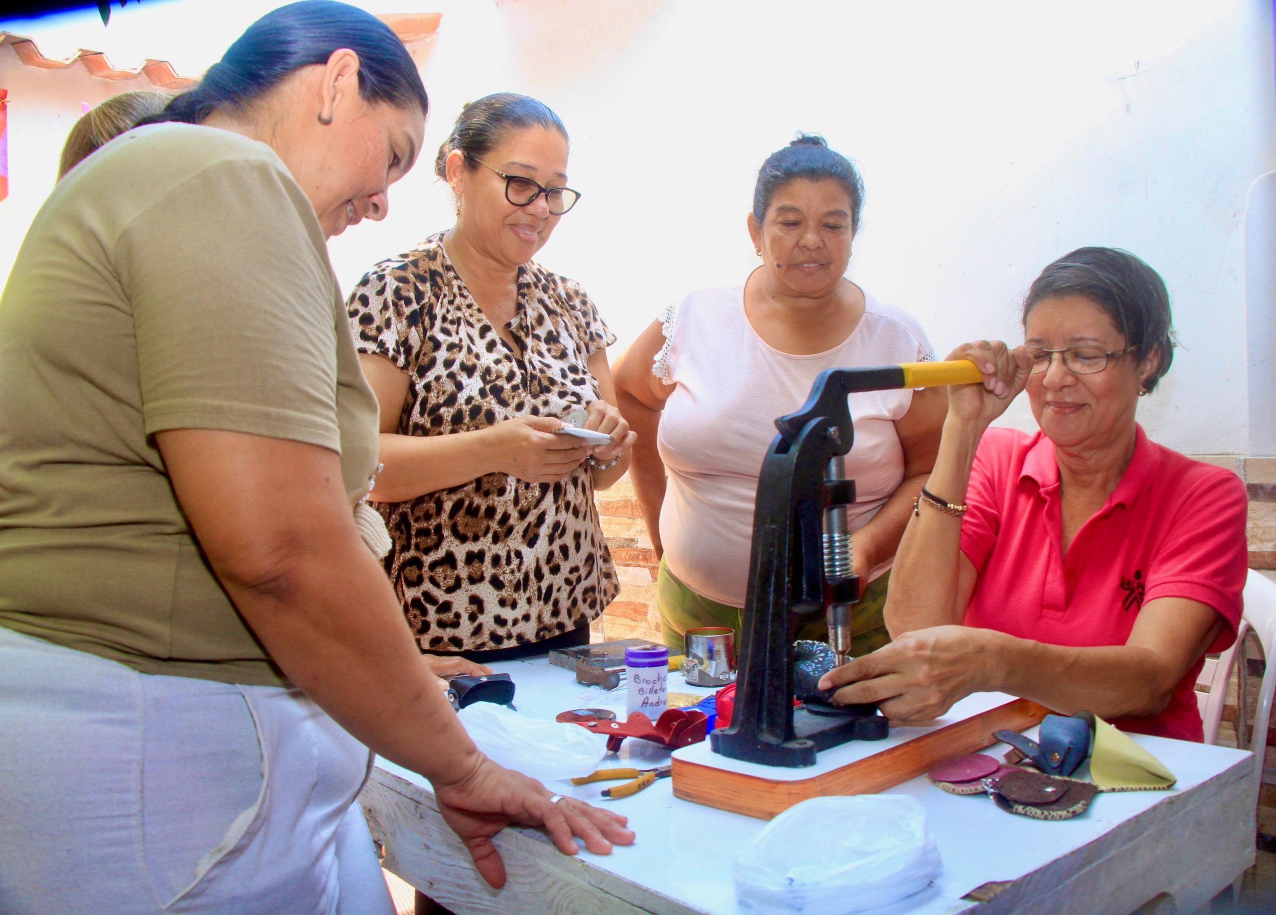 Con 48 horas de formación, las beneficiarias adquirieron conocimientos sobre el trabajo en cuero para la elaboración de bolsos, correas, billeteras y monederos, entre otros.