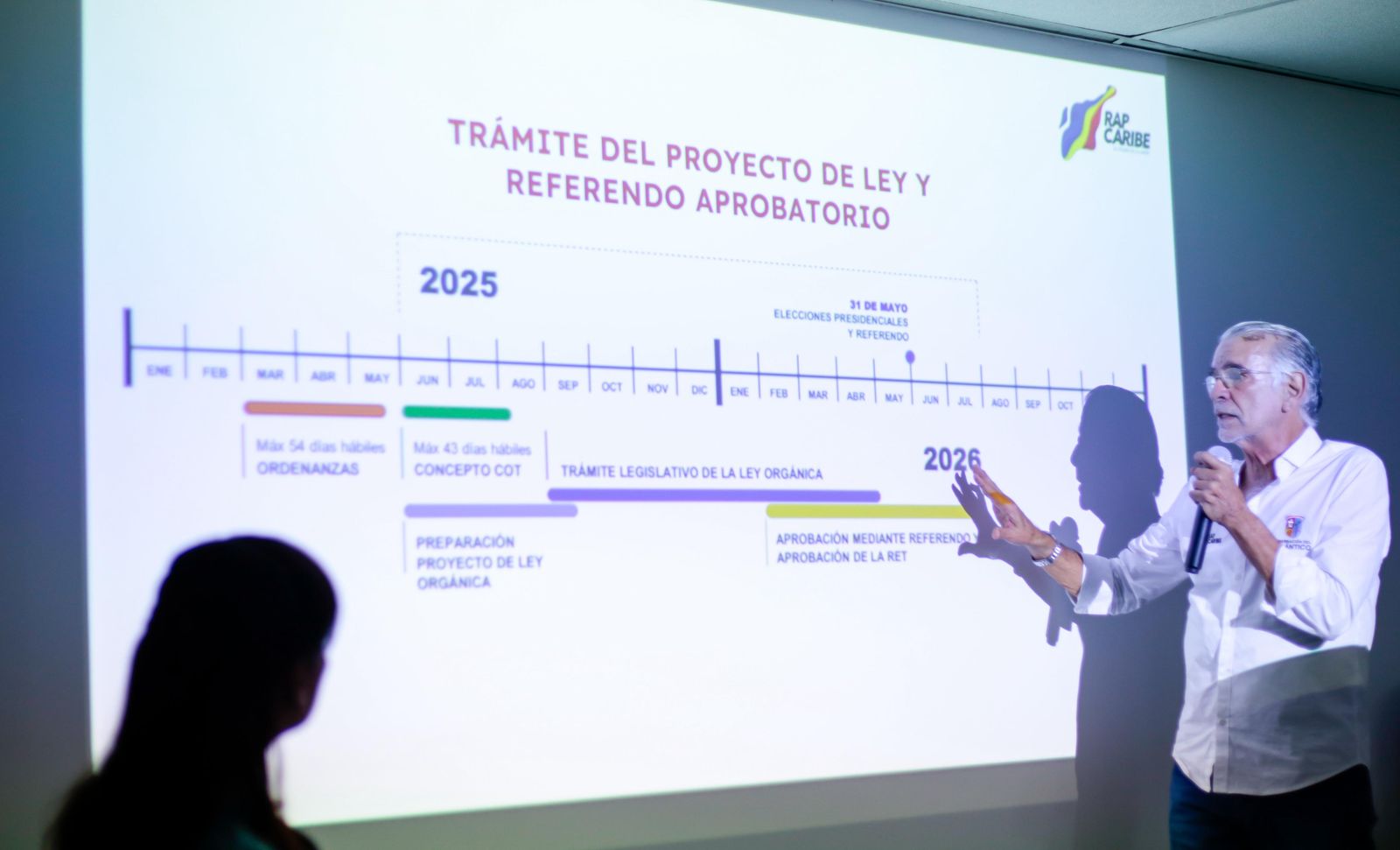 El gobernador del Atlántico y presidente de la RAP Caribe, Eduardo Verano, presentó un cronograma de actividades que tienen como propósito llegar a un referendo que coincida con las elecciones parlamentarias de mayo de 2026 en la que se le preguntará a la gente si quiere que esta zona del país se constituya en un ente territorial con autonomía para desarrollar proyectos que estén más allá de los límites de los departamentos.