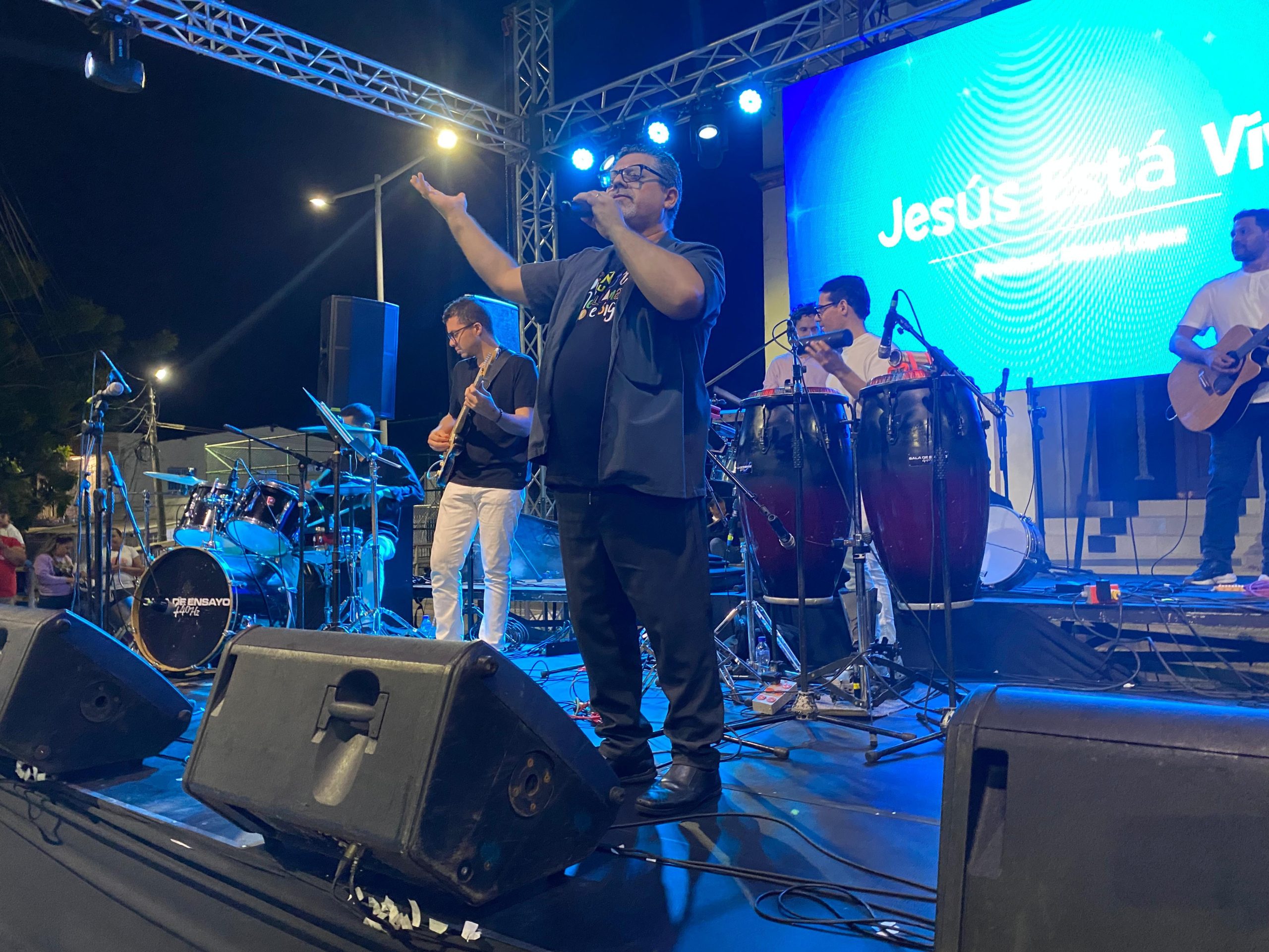 Durante el evento, el artista interpretó temas como Infinitas gracias, Ya está por venir y Jesús está vivo, que fueron coreados por los asistentes en un ambiente de fervor y celebración.