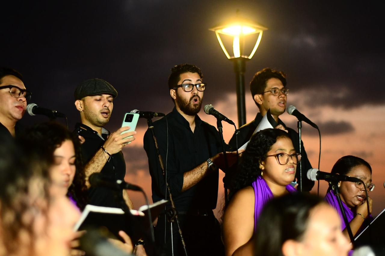 En una velada cargada de emoción y belleza natural, la Fundación Artística y Cultural Un Mar de Voces, junto al Coro Alberto Carbonell, llevó a cabo esta puesta en escena, que este año exploró los sonidos del gospel y los negros spirituals, conectando al público con expresiones musicales profundamente ligadas a la fe y la memoria.
