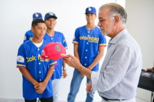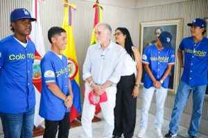 “Estamos con nuestros jóvenes de la Selección Colombia que acaba de representarnos en el torneo que se hizo en Repelón y Manatí, donde tuvimos ocho países compitiendo por la Liga Internacional del Béisbol de los 14 a los 15 años y que tienen algunas dificultades con la visa”, informó el gobernador.