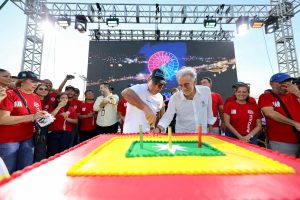 En el Malecón del Suroriente, barrio Rebolo, el mandatario de los atlanticenses estuvo como invitado especial del alcalde de Barranquilla, Alejandro Char, en la celebración del cumpleaños número 213 de la capital del Atlántico.