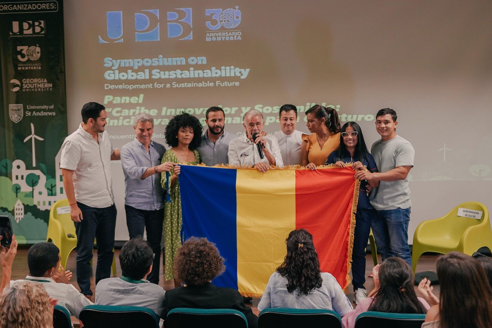 Durante un simposio sobre sostenibilidad global realizado en Montería, los gobernadores Erasmo Zuleta, de Córdoba; Lucy García, de Sucre y Eduardo Verano, de Atlántico y presidente de la RAP Caribe, compartieron la bandera de la región con el sector académico para seguir proponiendo la conformación de los comités departamentales que promueven el ‘Referendo por las Regiones’.