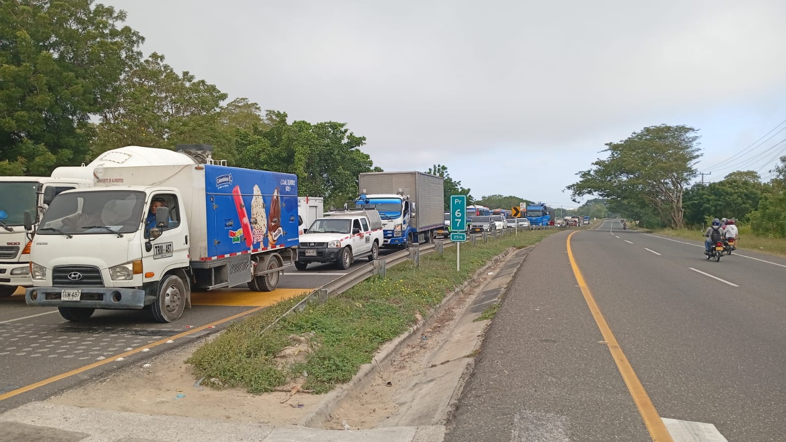 La carretera se encuentra cerrada, lo que ha generado una larga fila de vehículos detenidos a lo largo del trayecto, mientras los manifestantes mantienen su posición. Las autoridades están tratando de mediar para despejar la vía y restaurar la circulación.