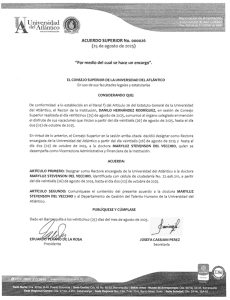 La Universidad del Atlántico informa a su comunidad universitaria y a la opinión pública que, mediante el Acuerdo Superior No. 000026 del 25 de agosto de 2025, el Consejo Superior designó a la doctora Mary Luz Stevenson del Vecchio como rectora encargada de la institución, desde el 26 de agosto hasta el 2 de octubre de 2025, periodo en el que el rector titular, Danilo Hernández Rodríguez, estará haciendo uso de sus vacaciones reglamentarias.