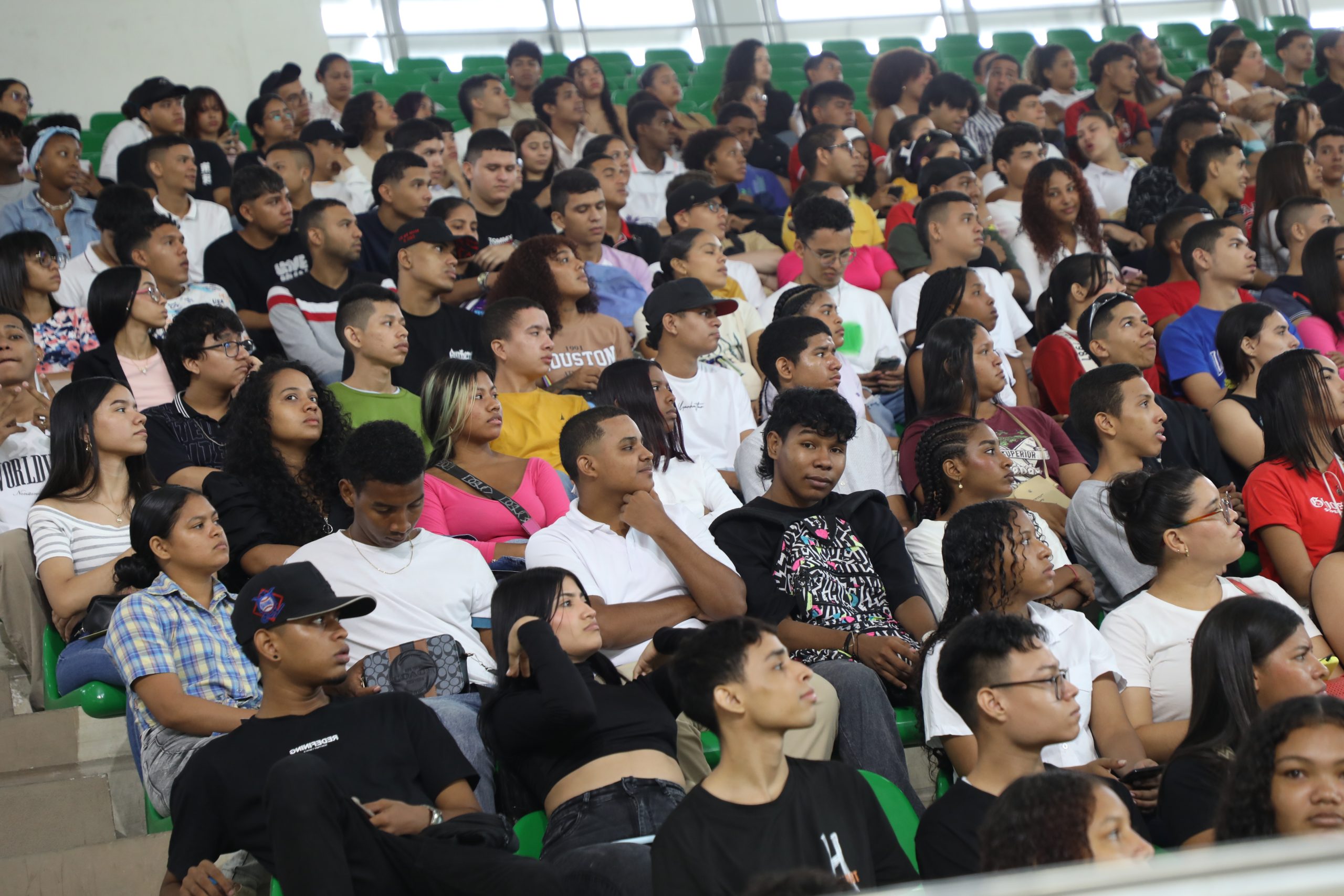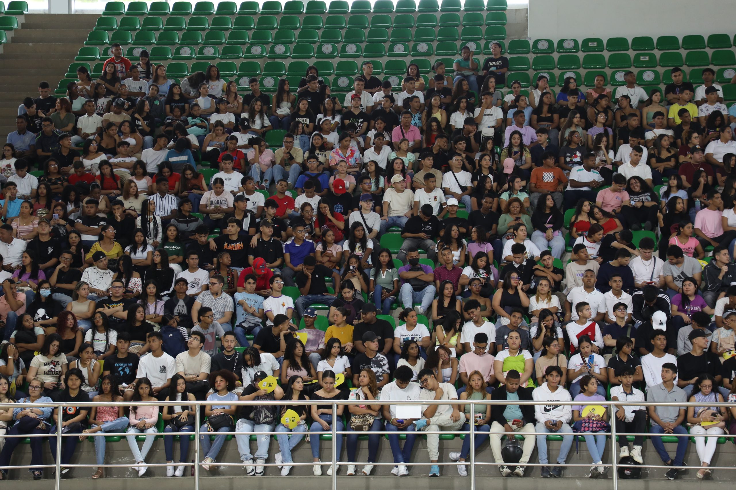 1.450 jóvenes de todas las localidades de la ciudad se dieron cita en el coliseo Elías Chegwin, donde recibieron la jornada de inducción y bienvenida oficial al programa que les permitirá continuar su ciclo de formación superior hasta convertirse en profesionales.