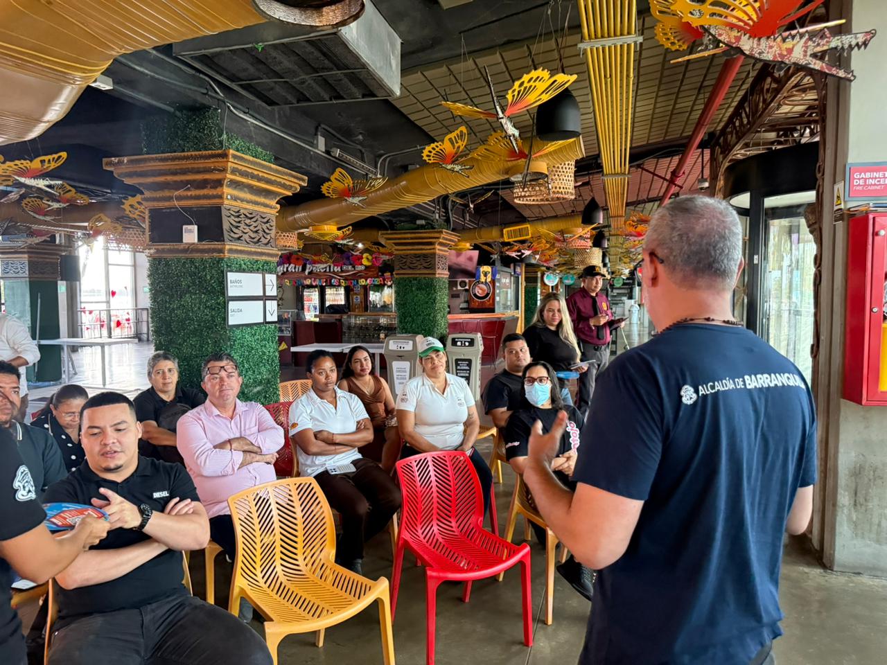 A través de una jornada de sensibilización con propietarios y empleados de los restaurantes en los sectores turísticos del Gran Malecón, la Oficina de Seguridad y Convivencia del Distrito llevó la campaña ‘El Carnaval de Barranquilla 2026 se vive con seguridad’, integrando la prevención delictiva con el compromiso social.