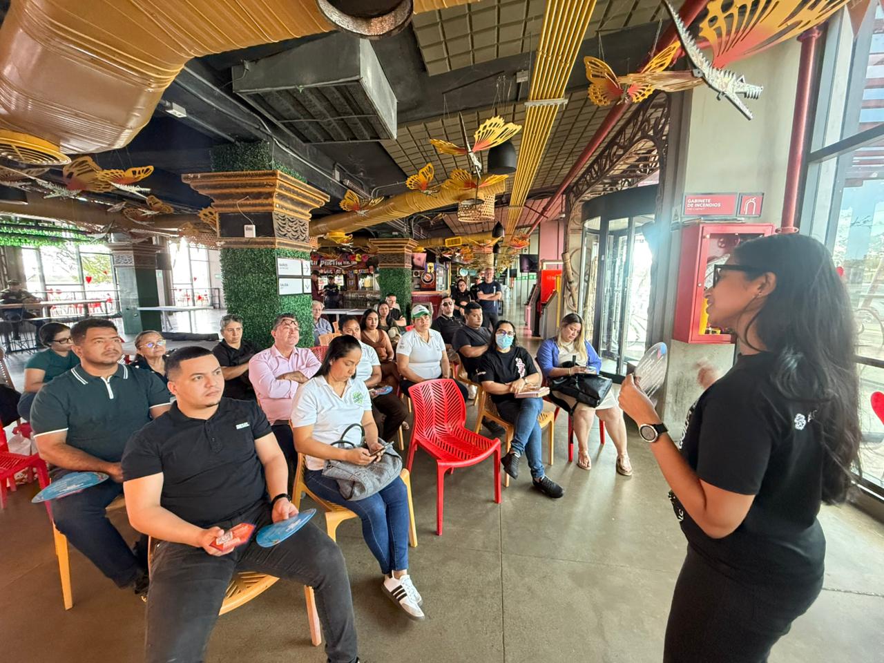 El personal del sector gastronómico fue socializado con recomendaciones preventivas —como el cuidado de pertenencias de turistas, la verificación de licor legal y el uso de parqueaderos seguros—, y con información actualizada de la ruta de atención frente a la violencia de género y al sector social LGBTIQ+.