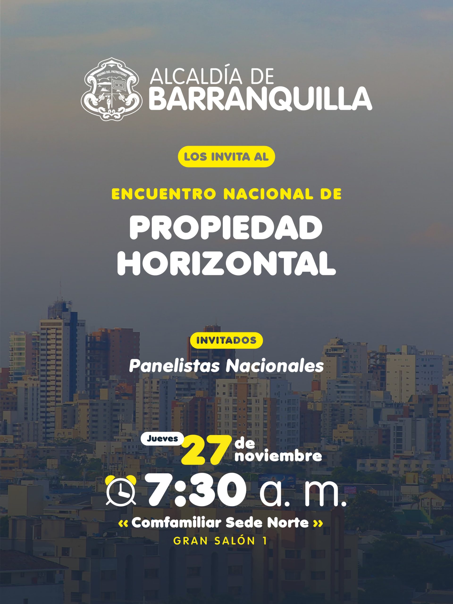 La Alcaldía de Barranquilla invita a administradores, propietarios y actores relevantes del sector a participar en el Encuentro Nacional de Propiedad Horizontal.