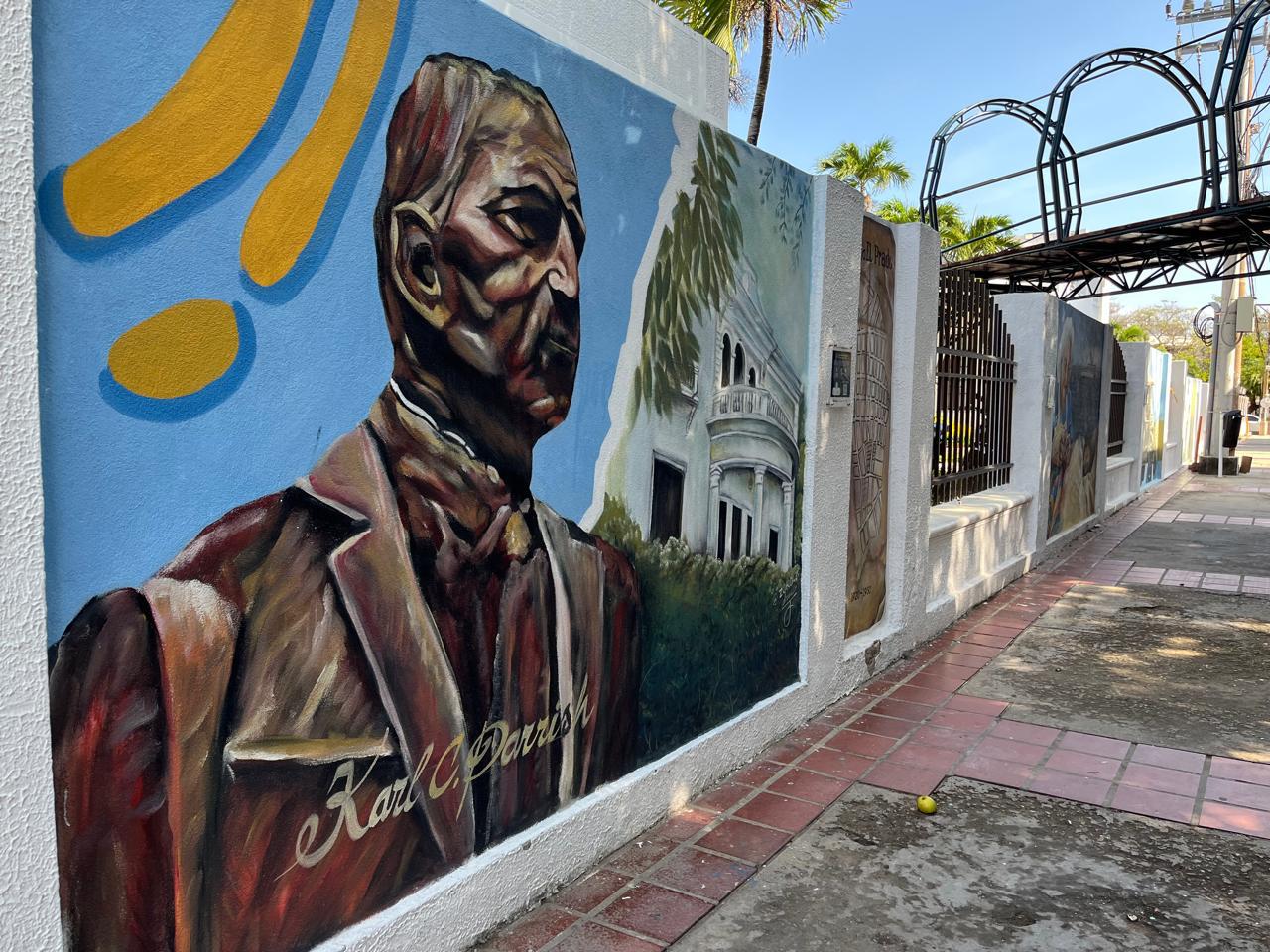 Los visitantes podrán observar a Alejandro Obregón pintando nubes en el cabello de Meira del Mar; de sus versos brotan hojas, mariposas amarillas y referencias a Gabriel García Márquez, Álvaro Cepeda Samudio y Marvel Moreno. Karl C. Parrish, fundador del barrio, completa esta constelación cultural.