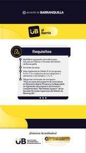 • Ser bachiller egresado de instituciones educativas públicas o privadas del Distrito de Barranquilla.