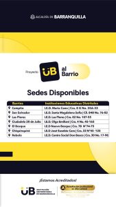 • IUB al Barrio cuenta con 15 sedes en todas las localidades de Barranquilla.