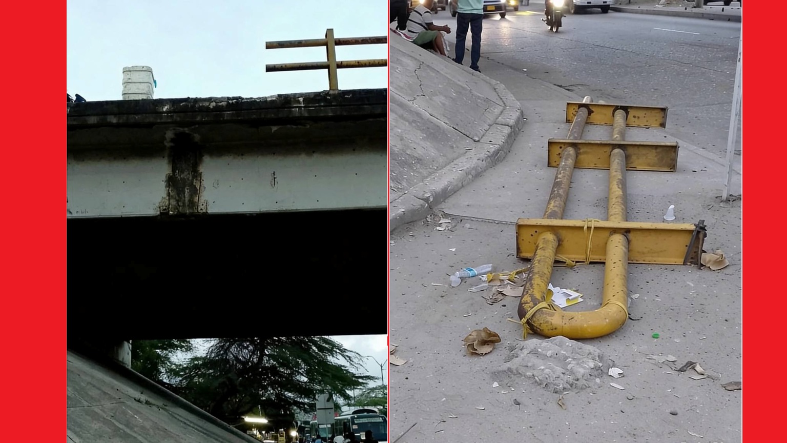 Una situación de riesgo se registró en las últimas horas en Barranquilla, luego de que colapsara parte de la baranda de un puente ubicado sobre la vía La Cordialidad.