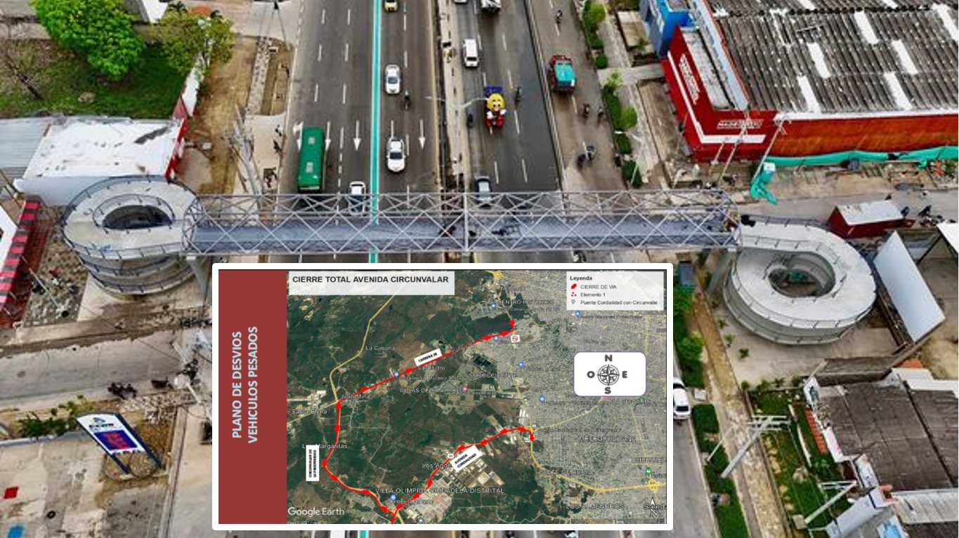 Por trabajos relacionados con la prueba de carga al puente peatonal ubicado en la Avenida Circunvalar con carrera 31, por parte del Consorcio Avenida Circunvalar 2018, la Secretaría de Tránsito y Seguridad Vial informa que, se ha programado desde el viernes 31 de mayo, el cierre total de la Avenida Circunvalar entre Carreras 36B y 29, desde las 10:00 p.m. del viernes hasta las 4:00 a.m. del sábado 1 de junio.