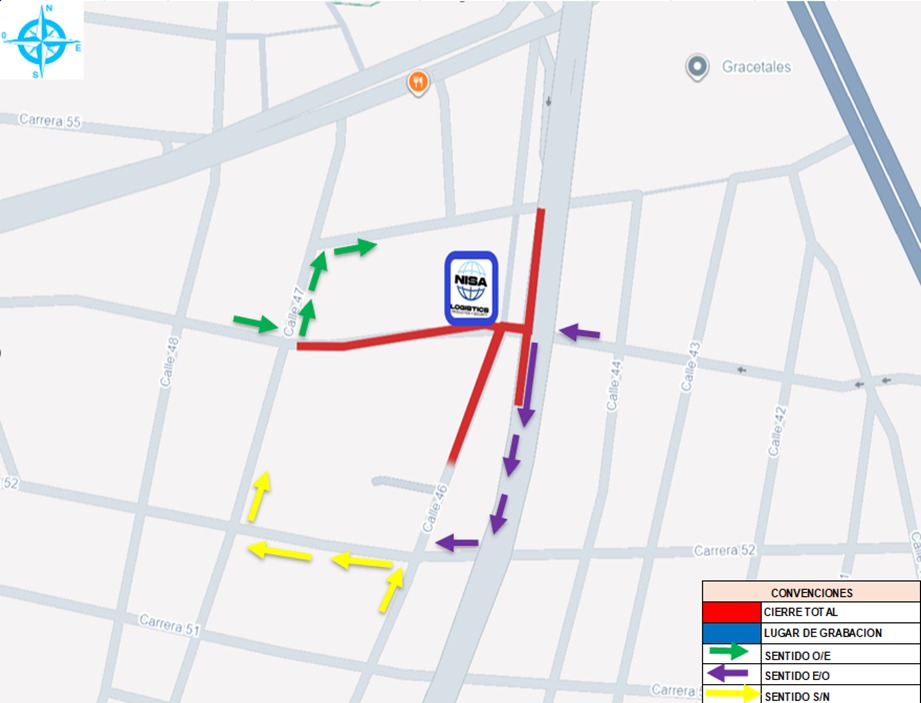 También se realizarán cierres el 14 de octubre, de 5:00 a.m. a 10:00 p.m., en los tramos de la carrera 53 entre calles 47 y 45, la calle 46 entre carreras 52 y 53B y la calle 45 entre las carreras 52 y 53B. Las rutas alternas incluyen desvíos por las calles 47 y 45 y por las carreras 52 y 53B.