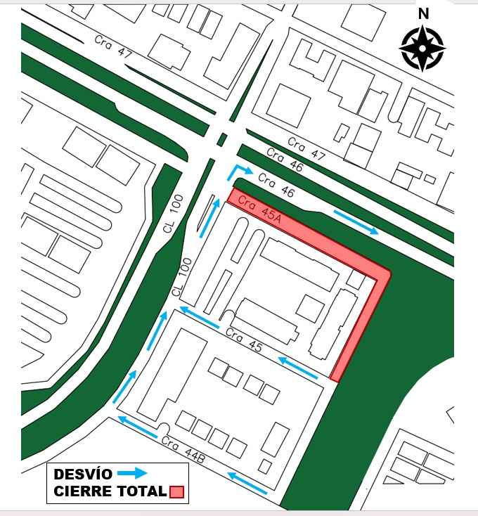 En esta zona, los conductores deberán desviarse por las carreras 44, 44B y 45 para continuar hacia la calle 100.