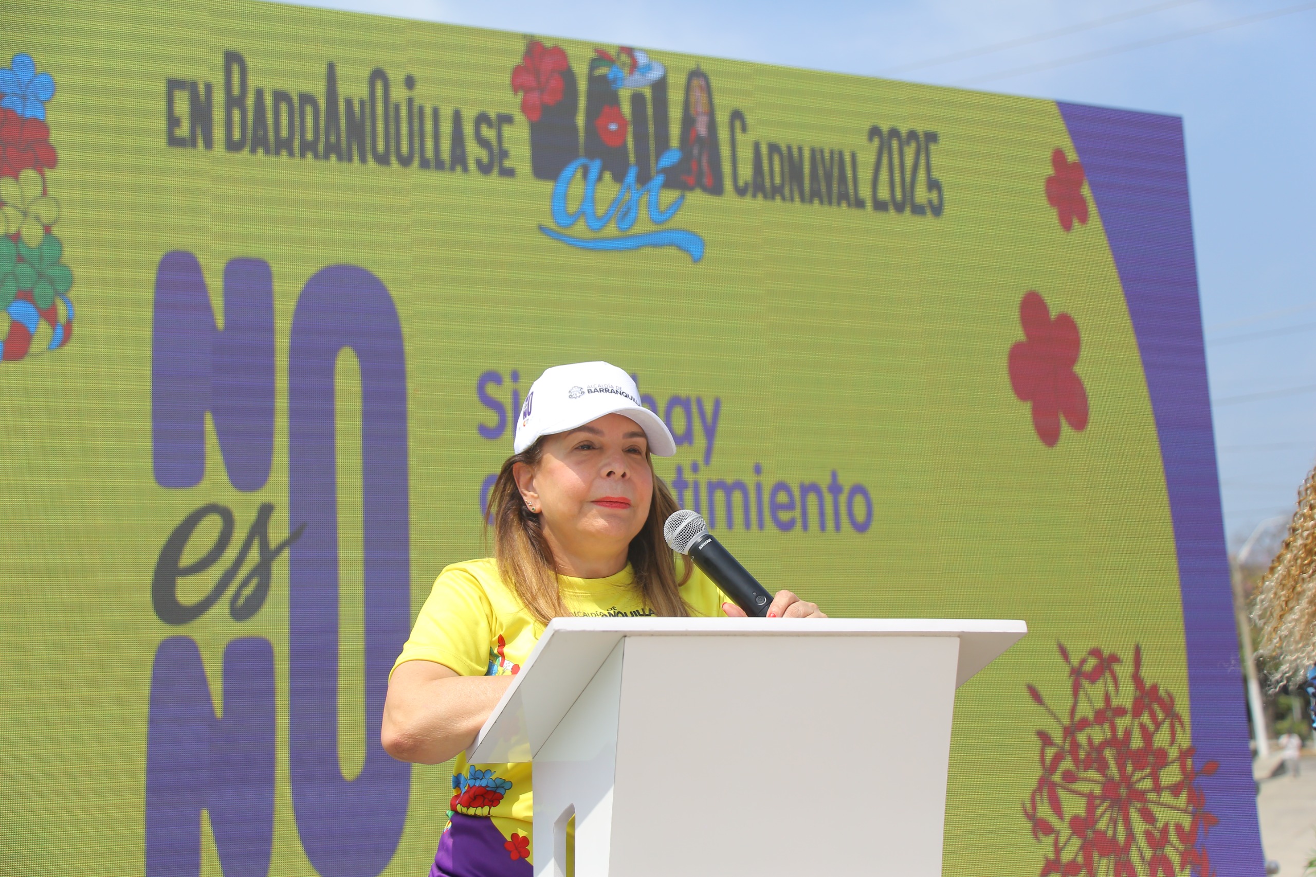 “Hoy nos encontramos en el Malecón de Rebolo para hacer el gran lanzamiento de la campaña No es NO, que por tercer año consecutivo está presente en el Carnaval, una fiesta que une a turistas y visitantes, con la cual buscamos prevenir y sensibilizar sobre el acoso hacia las mujeres y cualquier tipo de violencia”, expresó la jefa de la Oficina de la mujer, Equidad y Género, Helda Marino.
