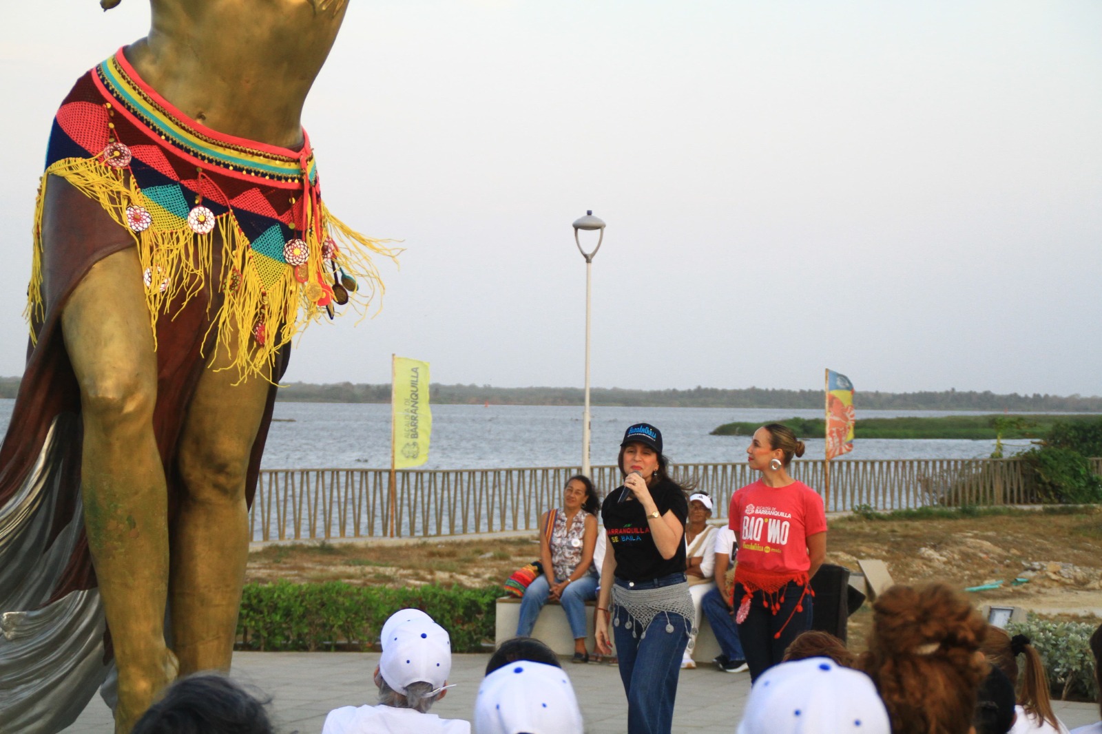 “Estamos muy alegres de estar hoy aquí, frente a esta gran estatua, adornada con un caderín que representa a la mujer barranquillera: trabajadora, berraca y luchadora. Con ellas hemos venido trabajando desde el año pasado y este año seguiremos fortaleciendo los clubes de crochet. Así que estén muy pendientes de nuestras redes sociales”, expresó la primera dama, Katia Nule.