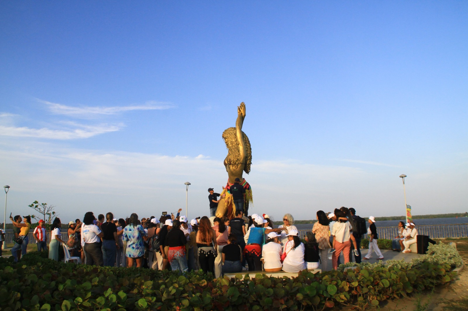“Estamos muy alegres de estar hoy aquí, frente a esta gran estatua, adornada con un caderín que representa a la mujer barranquillera: trabajadora, berraca y luchadora. Con ellas hemos venido trabajando desde el año pasado y este año seguiremos fortaleciendo los clubes de crochet. Así que estén muy pendientes de nuestras redes sociales”, expresó la primera dama, Katia Nule.