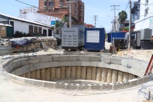 El pozo de la calle 85 con carrera 52 terminó la construcción de pilotes a una profundidad de 20,5 metros, para continuar con la etapa de excavación del pozo.