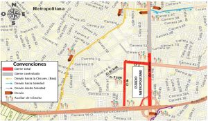 - Cierre del carril mixto de la calle 45 – avenida Murillo, desde la carrera 4 (sin incluirla) hasta la Circunvalar (sin incluirla) sentido norte-sur, es decir, desde la carrera 46 hacia la avenida Circunvalar.