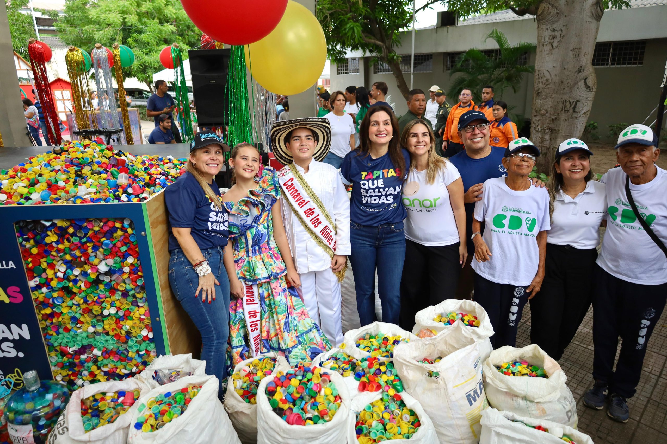 Durante la jornada, la primera dama Katia Nule entregó 2 toneladas de tapitas a la Fundación Sanar como parte de la campaña ‘Tapitas que Salvan Vidas’. Esta iniciativa ha movilizado a la comunidad, incluyendo colegios distritales, centros de vida, centros de desarrollo infantil y Alcaldía para apoyar a los niños con cáncer y contribuir al cuidado del medioambiente mediante el reciclaje.