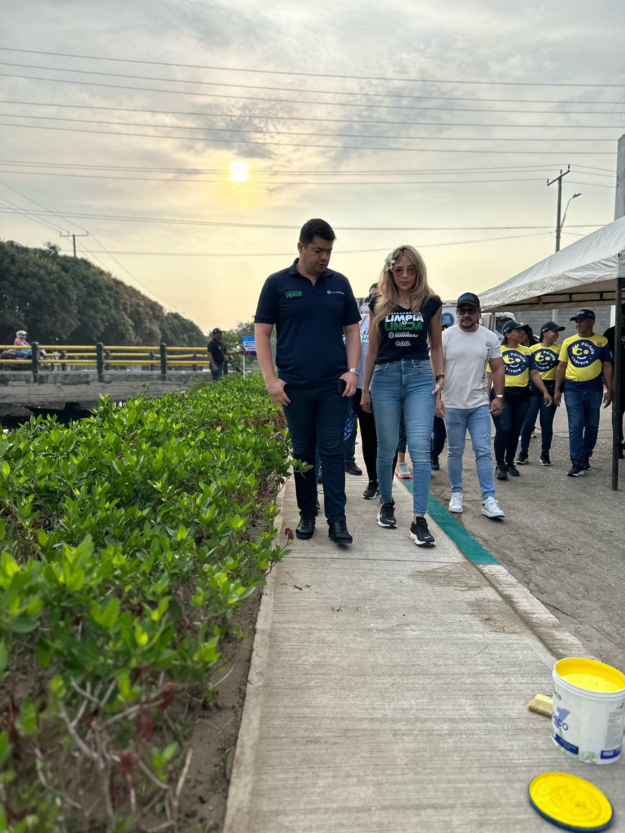 La gerente de Ciudad, Ana María Aljure, destacó esta actividad que logró una intervención integral en este punto crítico: “Estamos haciendo la recuperación de un punto que por años había estado abandonado, sucio, lleno de basura; ahora, con todo el equipo de gobierno de la Alcaldía, liderado por nuestro alcalde, Alejandro Char, logramos una transformación completa en equipo, y además estamos trabajando para que las personas se apropien de este espacio y dejen de arrojar basuras”. Además, indicó que se logró la recuperación de más de 355 m², la intervención de 180 metros lineales de paisajismo y, próximamente, un mural para embellecer el sector.