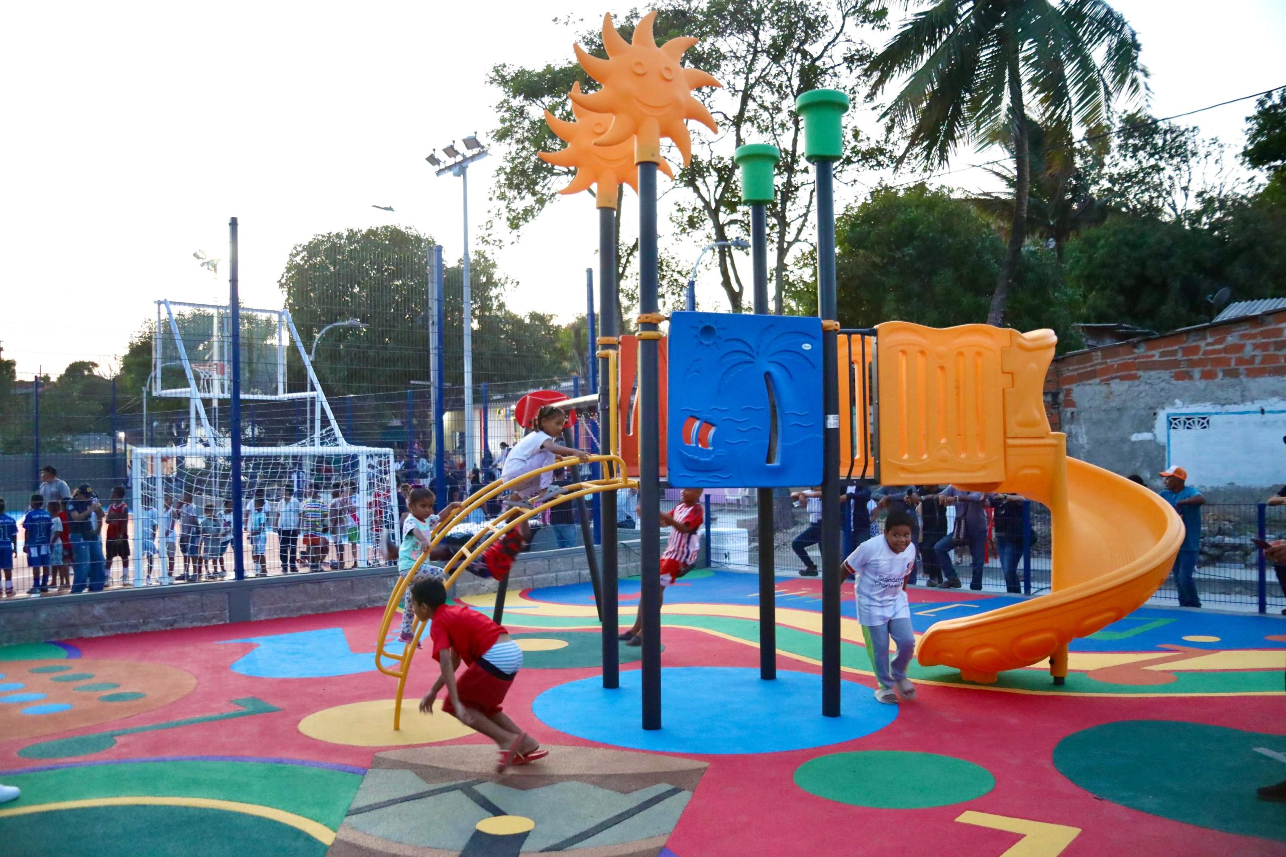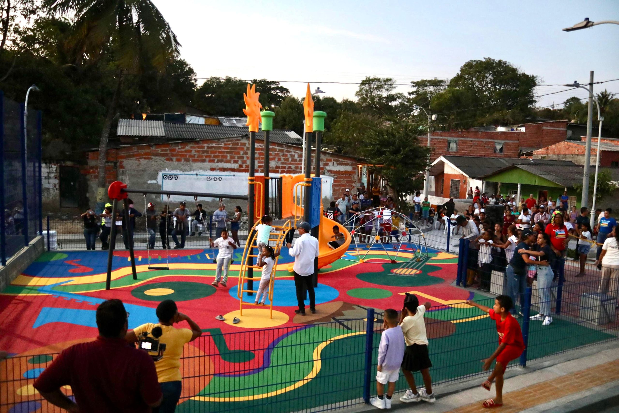 Una fiesta estalló en el barrio La Sierrita cuando el alcalde Alejandro Char hizo el desanude de cinta que oficializó la entrega de un nuevo espacio público que se recuperó para el goce de las familias del sector, que ahora cuentan con cancha múltiple, parque y zona de integración para todos.
