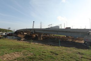 En el puente de sentido sur-norte se han construido a la fecha 25 pilotes, las columnas de los apoyos del 1 al 5 y sus vigas cabezales, 16 vigas postensadas y 32 vigas transversales.