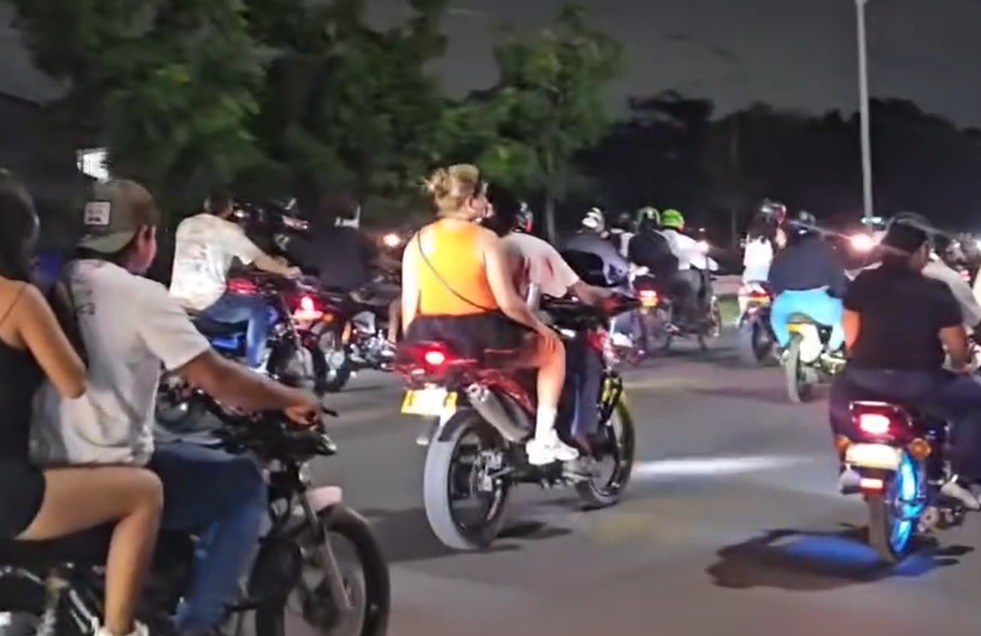 Videos difundidos en redes sociales muestran grupos numerosos de motos transitando por vías como la Circunvalar y el sector de Villa Carolina, sin controles visibles por parte de las autoridades.
