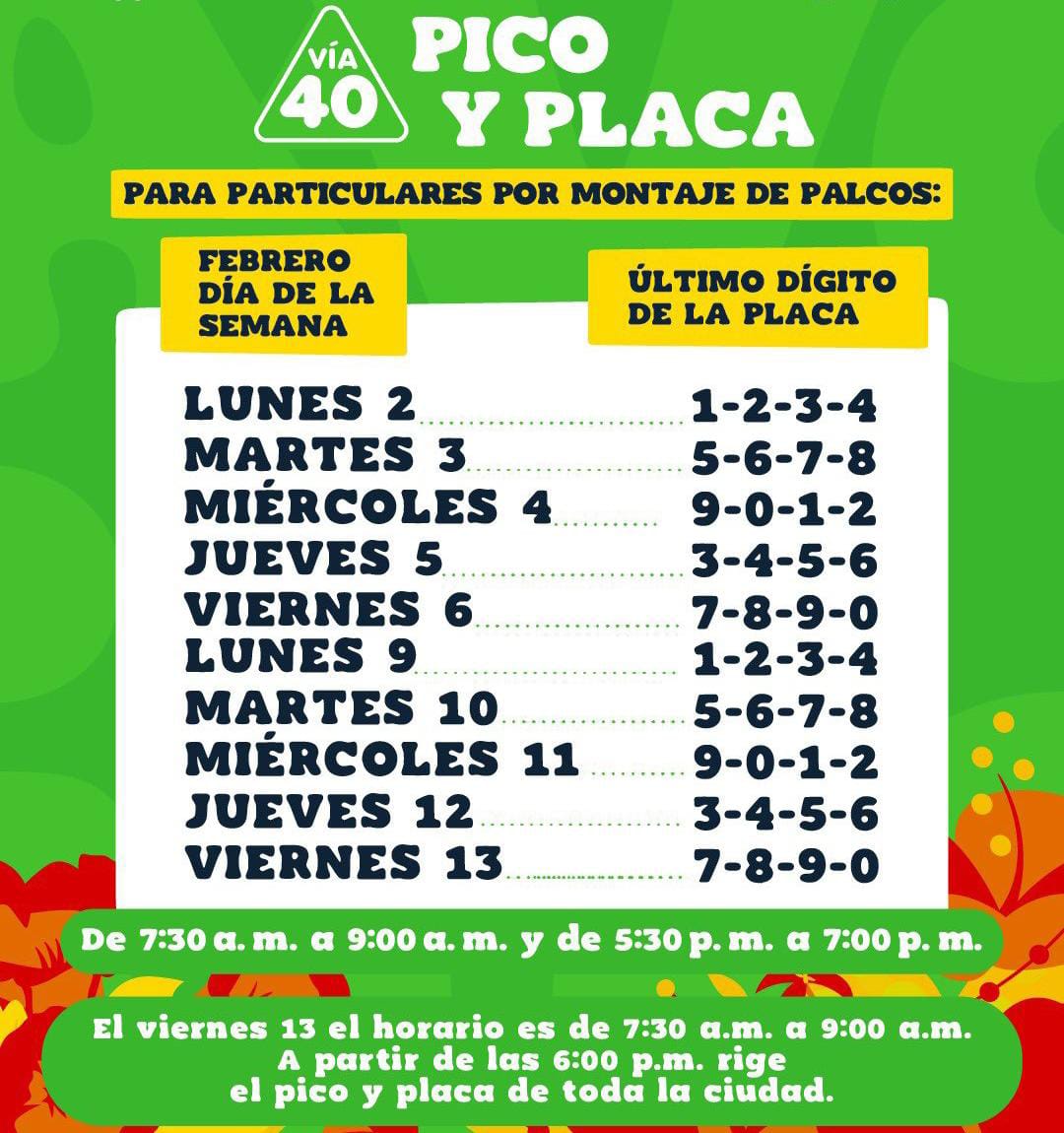 La Secretaría de Tránsito de Barranquilla informó que a partir de este lunes 2 de febrero se implementa un pico y placa temporal en la Vía 40, debido al montaje de los palcos del Carnaval de Barranquilla 2026.