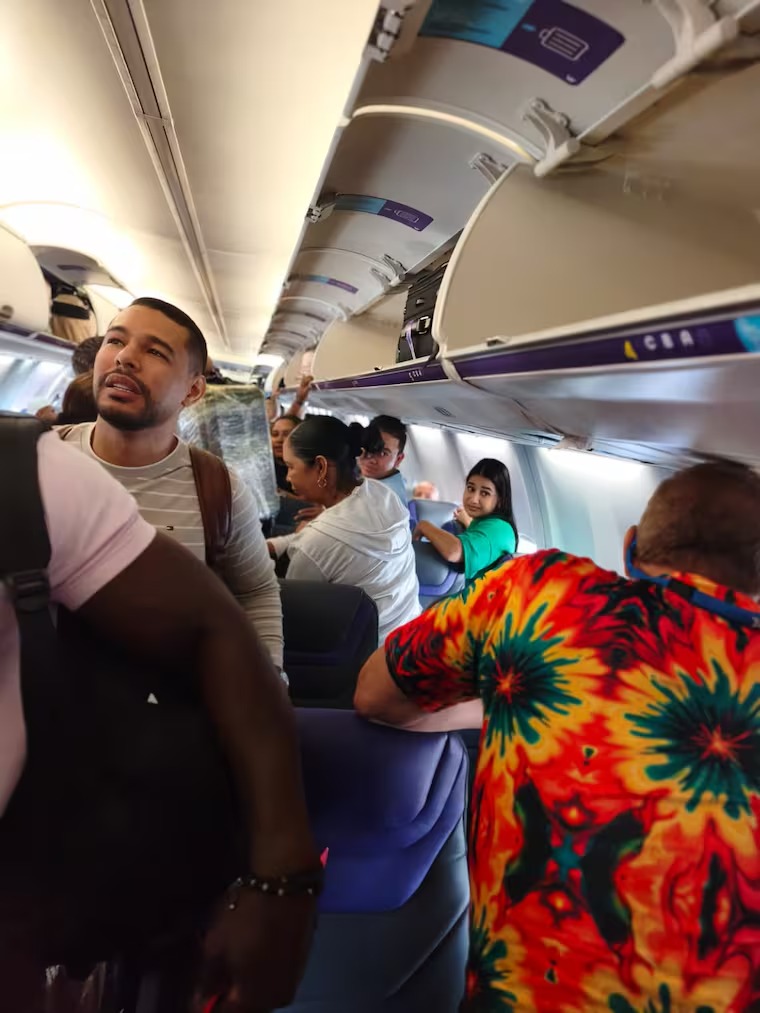 Un pasajero identificado como Feliz Heredia relató que la situación se presentó casi de inmediato tras el despegue. “No llevábamos ni dos minutos de vuelo cuando una de las turbinas se incendió y tuvimos que regresar”, aseguró.