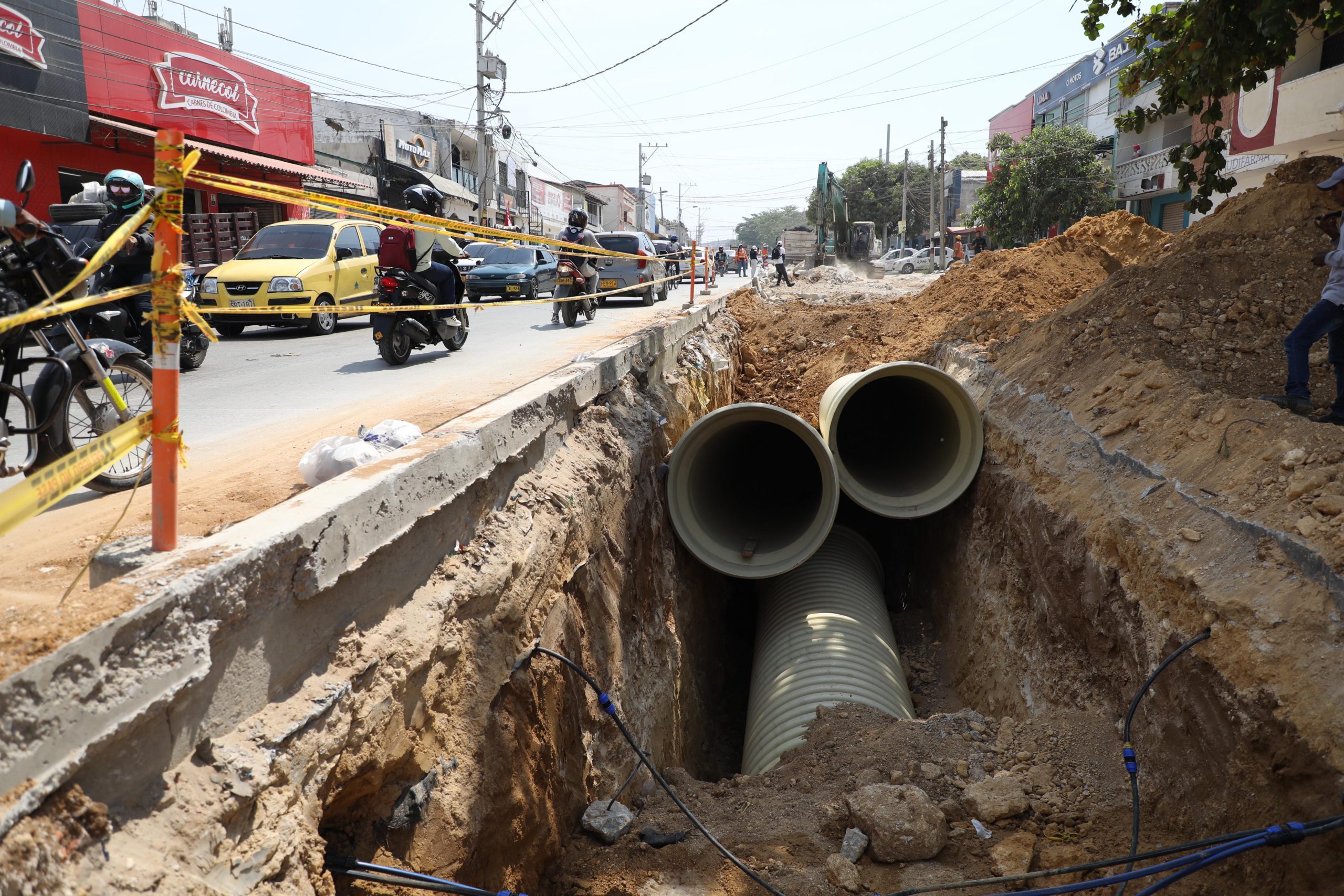 “La buena noticia es que ya estamos instalando la tubería de 600 metros lineales por toda la Cordialidad para recoger todas las aguas lluvias que llegan desde la carrera 9F hasta la carrera 18 y de ahí un kilómetro completo por la carrera 18 hasta llegar a la calle 39, todo por debajo, usando tuberías”.