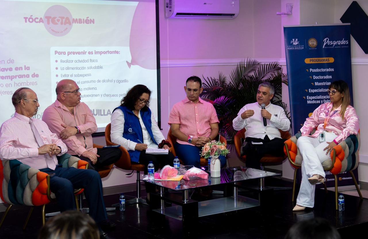 El jueves 17 de octubre se realizó el panel: “Tócate También y Abraza la Vida, Desafíos en la Prevención del Cáncer de mama”, dirigido a gerentes de EPS, e IPS Oncológicas y referentes de alto costo, en la sede de posgrados de la Universidad Simón Bolívar, con expertos como Federico Llinás, mastólogo; Alberto Urueta Buelvas, cirujano y especialista en radioterapia oncológica; Germán Villegas, médico cirujano; Edgar Navarro, cirujano y director del registro poblacional de cáncer en Barranquilla; Martha Ospino, epidemióloga y especialista del Instituto Nacional de Cancerología, y Viviana Catalán, magíster en auditoria en salud.