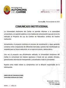 La dirección de Comunicaciones reiteró, además, el compromiso de la Uniautónoma con la difusión responsable de la información en medio del interés generado por la posible transformación de su naturaleza jurídica.