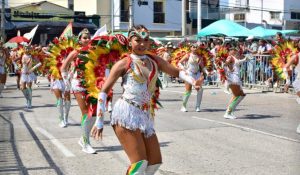 Desde la 1:00 p. m., la carrera 44 se llenó de color, música y tradición mientras miles de barranquilleros y visitantes siguieron el desfile que unió lo popular con lo simbólico. Más de 150 grupos folclóricos, entre cumbiambas, comparsas y danzas tradicionales, desfilaron junto a carrozas que evocaban el mágico universo literario de Macondo, con mariposas, flores y escenas inspiradas en la obra del Nobel colombiano.
