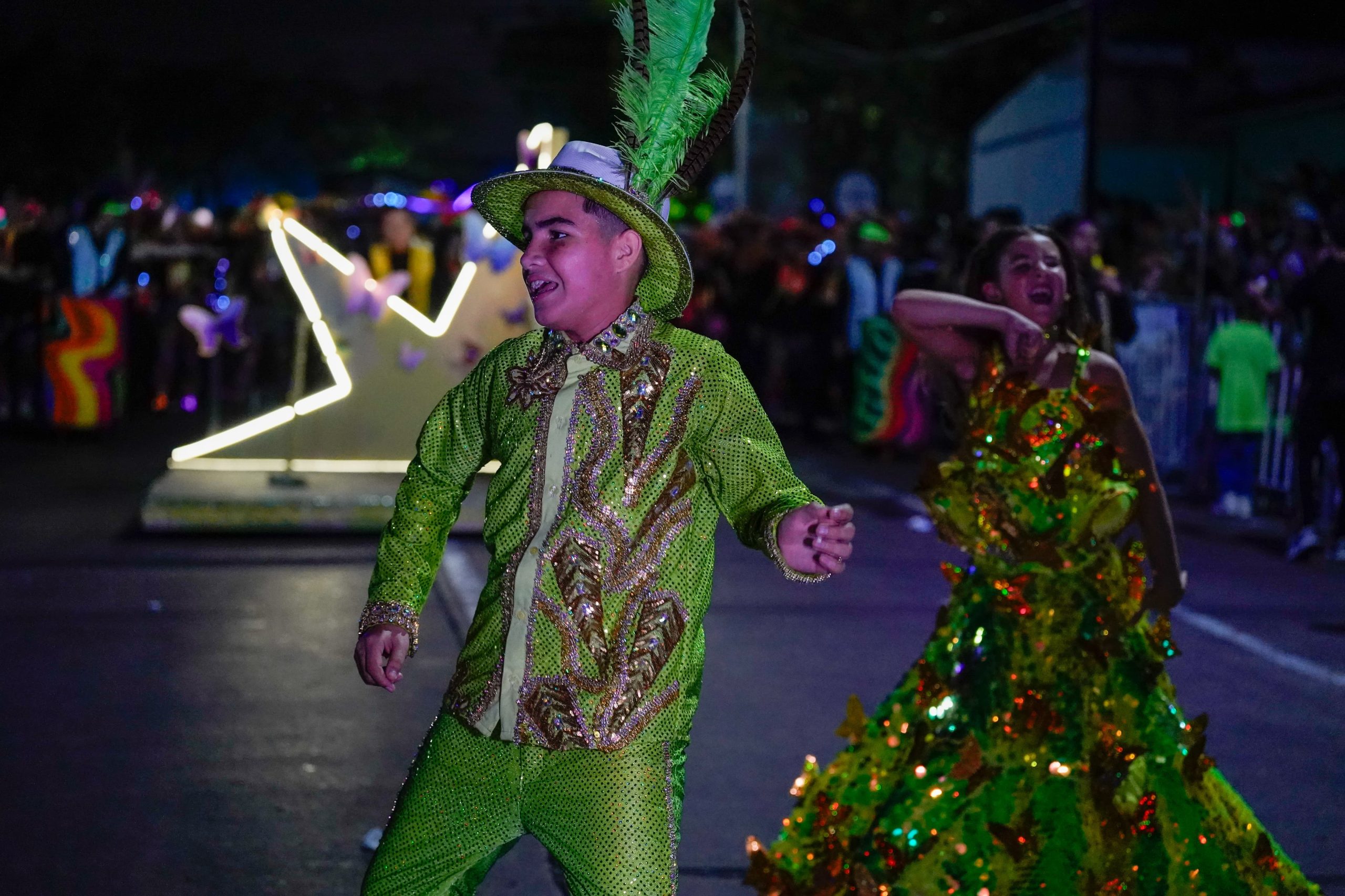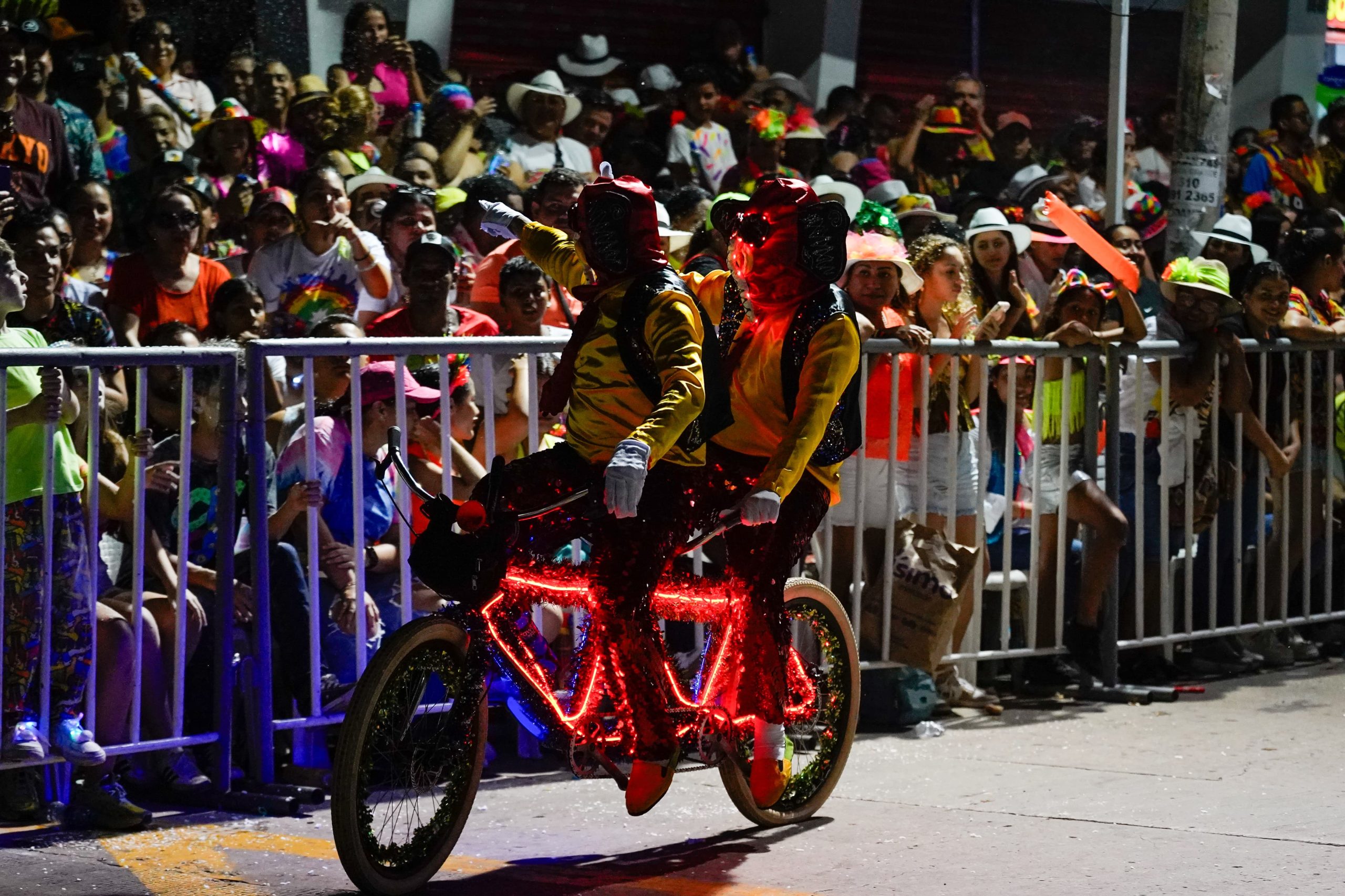 El desfile también fue un homenaje a la diversidad de edades y tradiciones. Comparsas de todas las edades se unieron para mostrar la riqueza del folclore barranquillero, mientras que artistas como Gusi, Kevin Flórez y Keyvin Ce pusieron a todos a bailar con sus contagiosos ritmos. Cada grupo aportó su magia única a una noche que celebraba la unidad de la ciudad a través de la música, la danza y el arte.