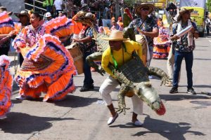 Por su parte, la Corporación Folclórica Trietnia de Ciénaga presentó la Danza del Caimán Cienaguero, con 30 bailarines y cinco músicos, manteniendo viva una tradición de 30 años. La puesta en escena narra la trágica historia de Tomasita, una niña que desapareció un 20 de enero de 1800, día de San Sebastián, y cuyo final se relaciona con un caimán.