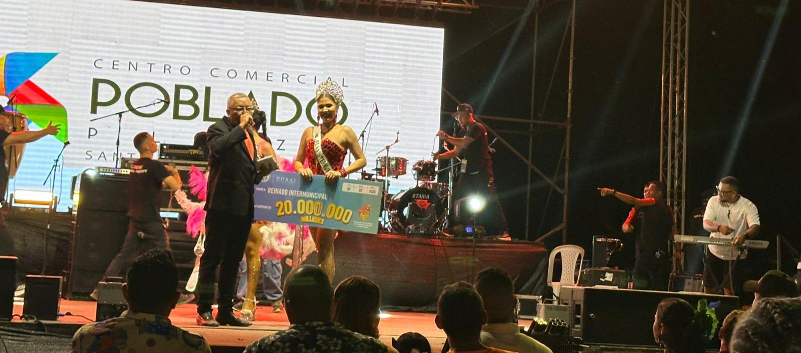La noche avanzó entre colores, danzas y barras encendidas. En medio de la expectativa, Shaddia destacó con un vestido rojo que evocó fuerza, elegancia y carácter. Cuando el certamen llegó a su momento decisivo, solo quedaron dos nombres en escena: María Paula Amaya, de Soledad, y Shaddia Navarro, la local.