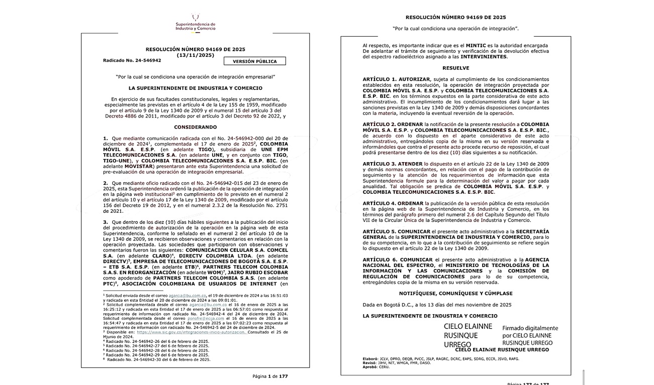 La Superintendencia de Industria y Comercio aprueba la fusión entre Tigo y Movistar con condiciones que buscan proteger la competencia.