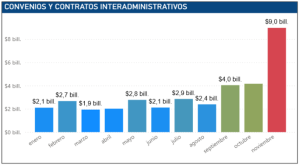 El fenómeno representa 2,9 veces el promedio mensual registrado entre enero y agosto de 2025 ($2,1 billones), lo que supone un incremento del 190 % frente a niveles históricos. La Contraloría calificó esta concentración como un indicador crítico de fallas en la planificación y posibles aceleraciones contractuales preelectorales.