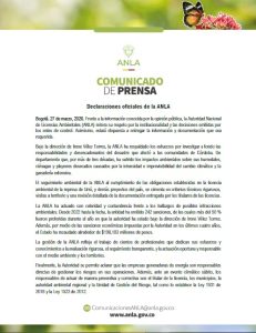 Asimismo, la ANLA enfatizó que sus actuaciones se han desarrollado “con celeridad y contundencia”, en respuesta a las situaciones que han generado preocupación en torno al caso.