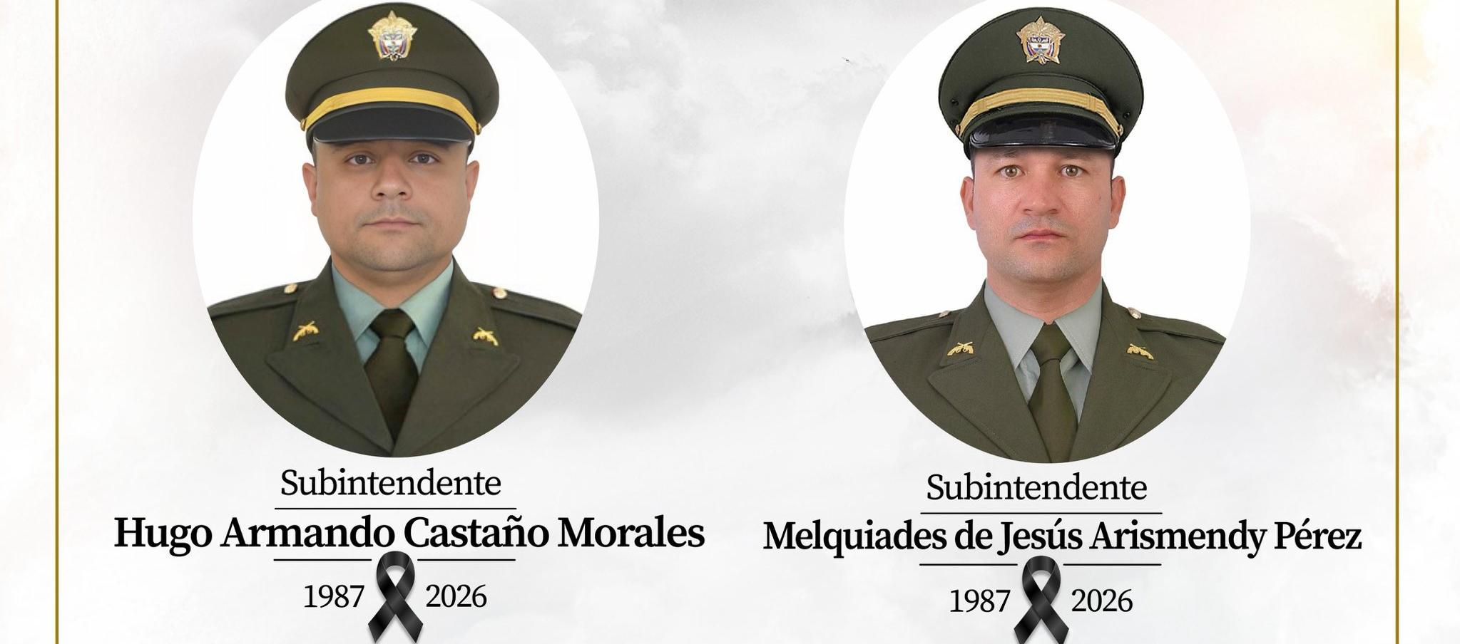 Las víctimas fueron identificadas como Hugo Armando Castaño Morales y Melquiades de Jesús Arismendy Pérez, ambos de 39 años. Así lo confirmó el director de la Policía Nacional, general William Rincón, quien informó que los uniformados fueron atacados con armas de largo alcance mientras cumplían funciones oficiales.
